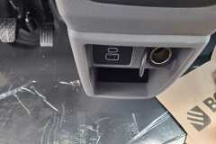 Gniazdo 12 V w konsoli środkowej z przodu i gniazdo 12 V na słupku D na dole, z tyłu po prawej stronie